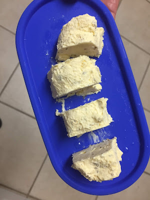 The fun part was softening the butter, adding seasonings, and reforming it. Sticky, but fun.